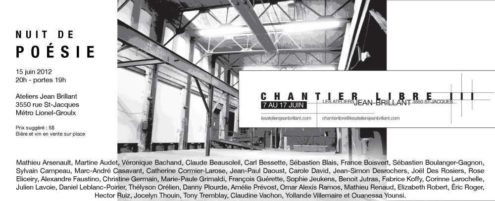 La nuit de la poésie de Chantier libre, c’est vendredi le 15 juin.