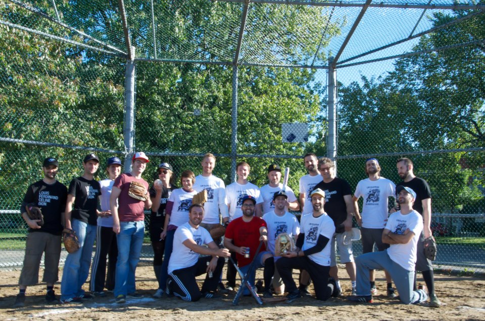 Chaque joueur à son arrivée sur le terrain doit lancer sa mitte dans le tas et quelqu’un les départage en deux tas égaux – les deux équipes sont ainsi formées. L’équipe de Wild Bill s’appelle Les Martres de Centre-Sud et celle d’Archibald Les Louis Ferdinand Céline Dion. Il va sans dire que les deux joueurs ci-haut mentionnés ne joueront jamais ensemble.