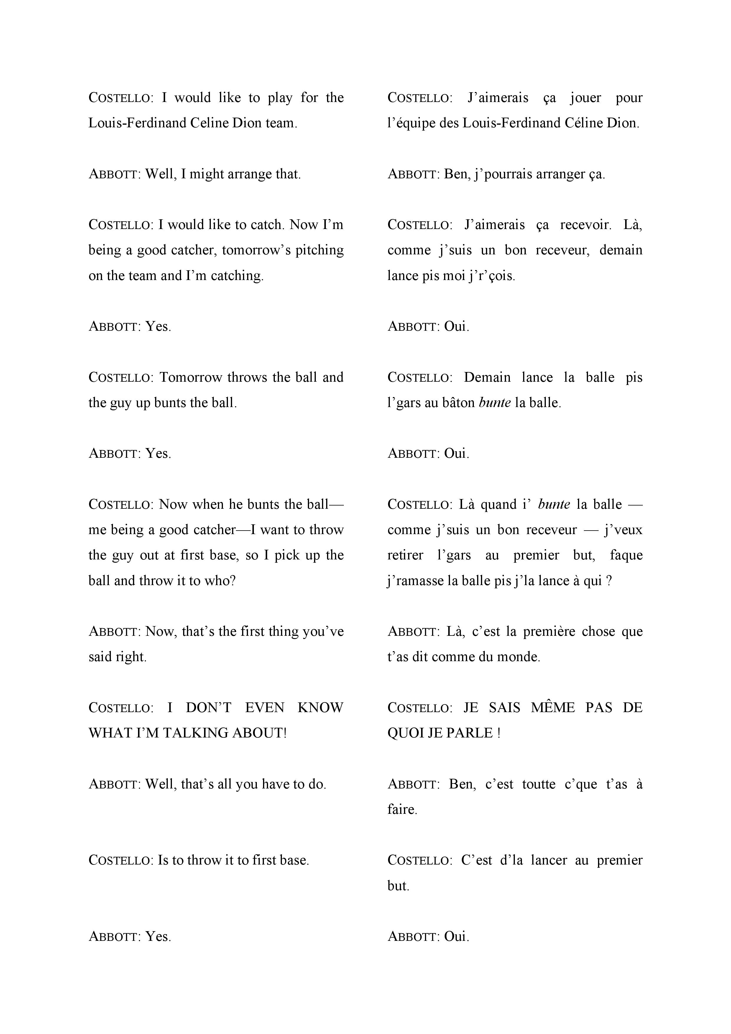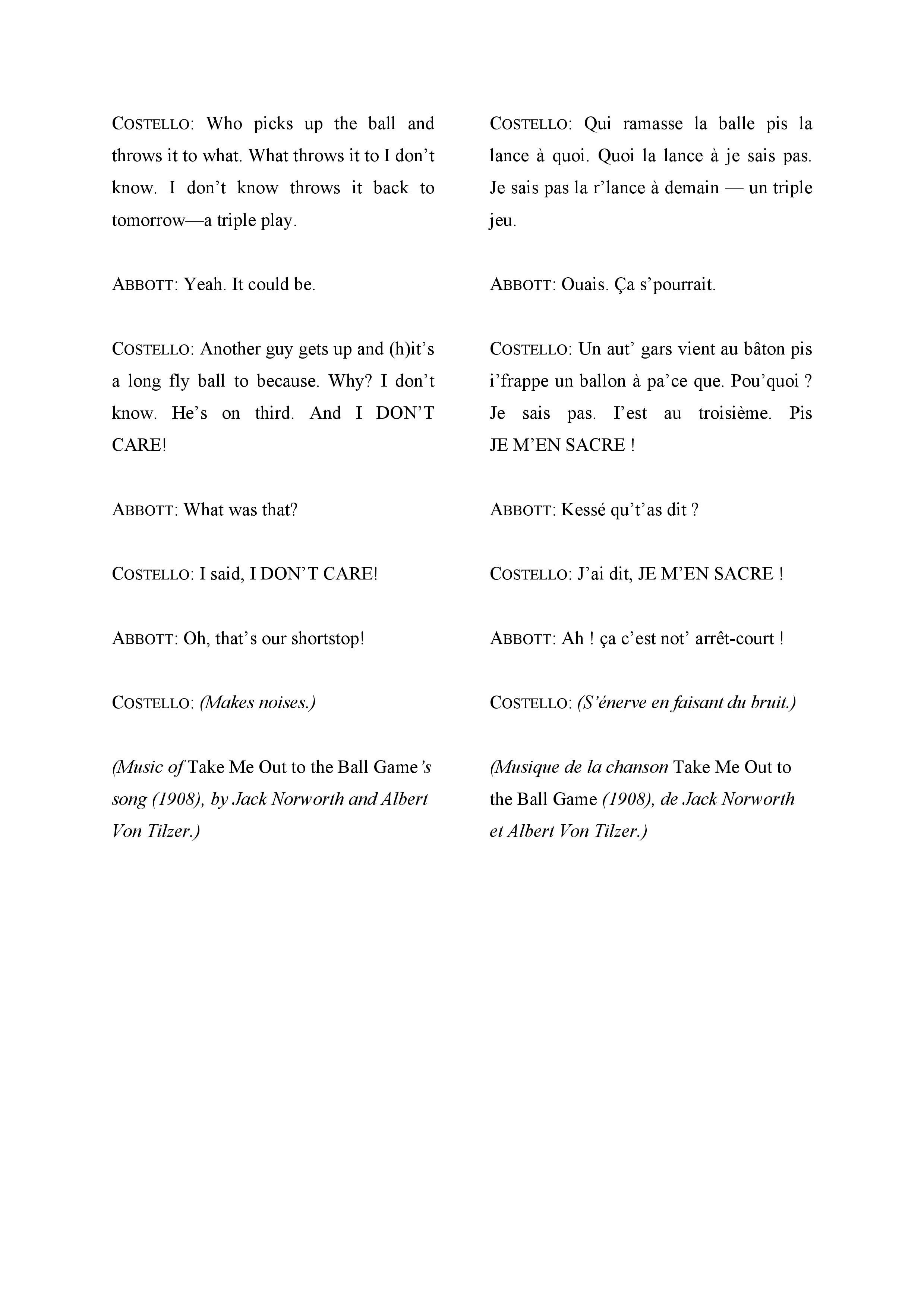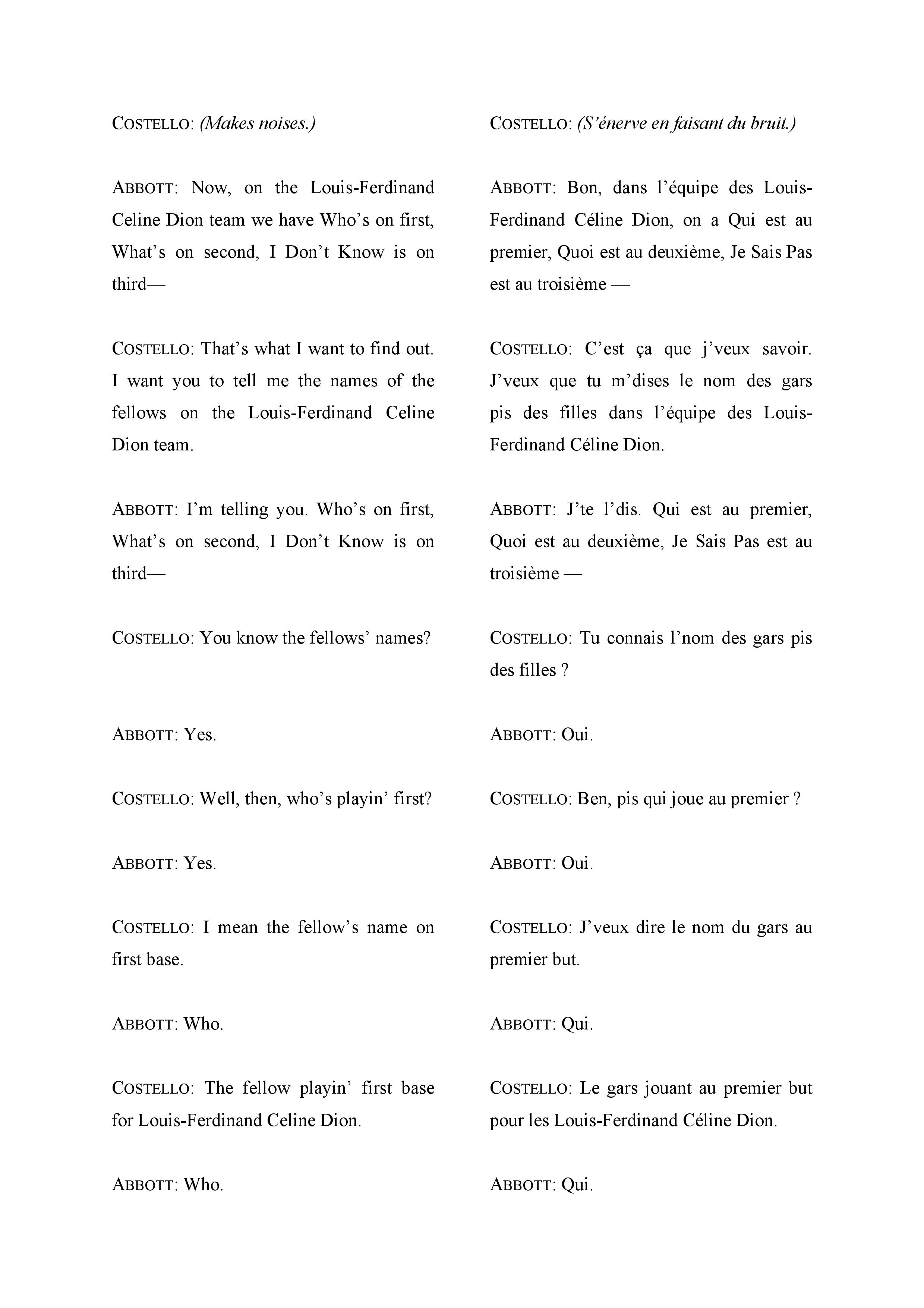 Publié le 28 octobre 20122 novembre 2012 par poemesale Who’s on first? Abbott et Costello Partagez ceci : Cliquez pour partager sur X(ouvre dans une nouvelle fenêtre) X Cliquez pour partager sur Facebook(ouvre dans une nouvelle fenêtre) Facebook J'aime chargement… En lien