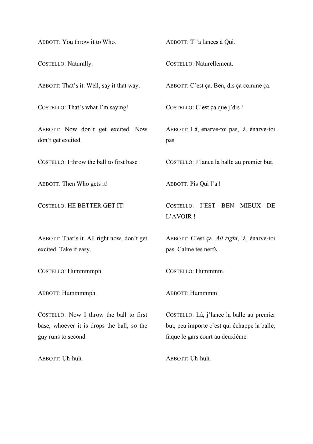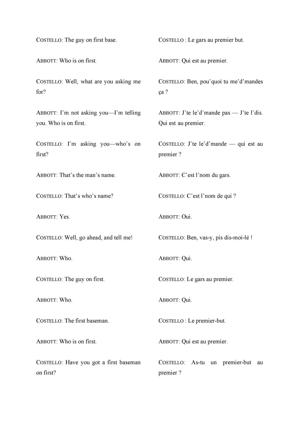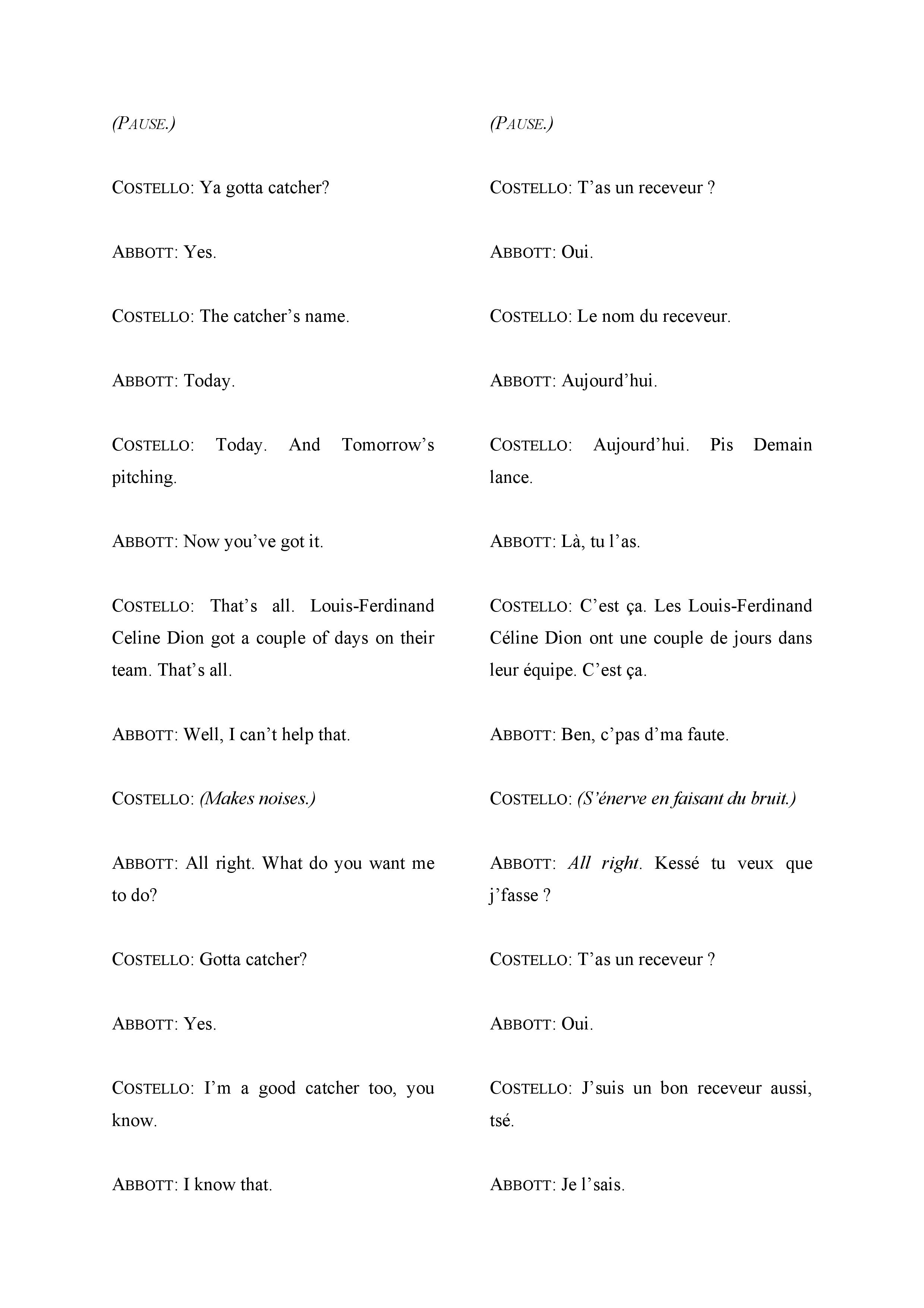 Publié le 28 octobre 20122 novembre 2012 par poemesale Who’s on first? Abbott et Costello Partagez ceci : Cliquez pour partager sur X(ouvre dans une nouvelle fenêtre) X Cliquez pour partager sur Facebook(ouvre dans une nouvelle fenêtre) Facebook J'aime chargement… En lien